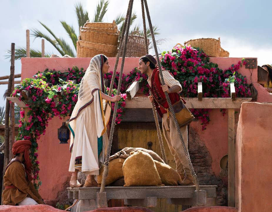 Алладин занимался мелким воровством, не находя другого способа зарабатывать на жизнь. Верной напарницей всегда оставалась обаятельная обезьянка Аббу. У правителя Аграба появилась информация о существовании удивительной пещеры с несметными богатствами. Главной ценностью был лампа с заточенным внутри Джином. Только избранному суждено войти в сокровищницу. Этим человеком является главный герой, который влюбляется в очаровательную Жасмин – дочку властелина. Всем персонажам этой истории предстоит пережить много захватывающих приключений, преодолеть трудности и опасности.